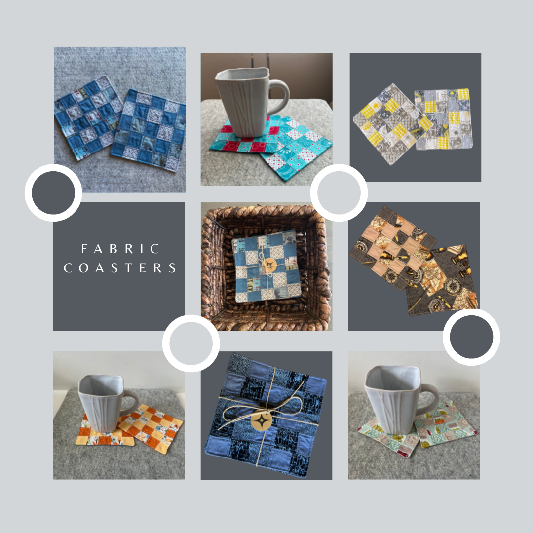 Check out our collection of upcycled fabric coasters.These coasters utilize cotton fabric that...