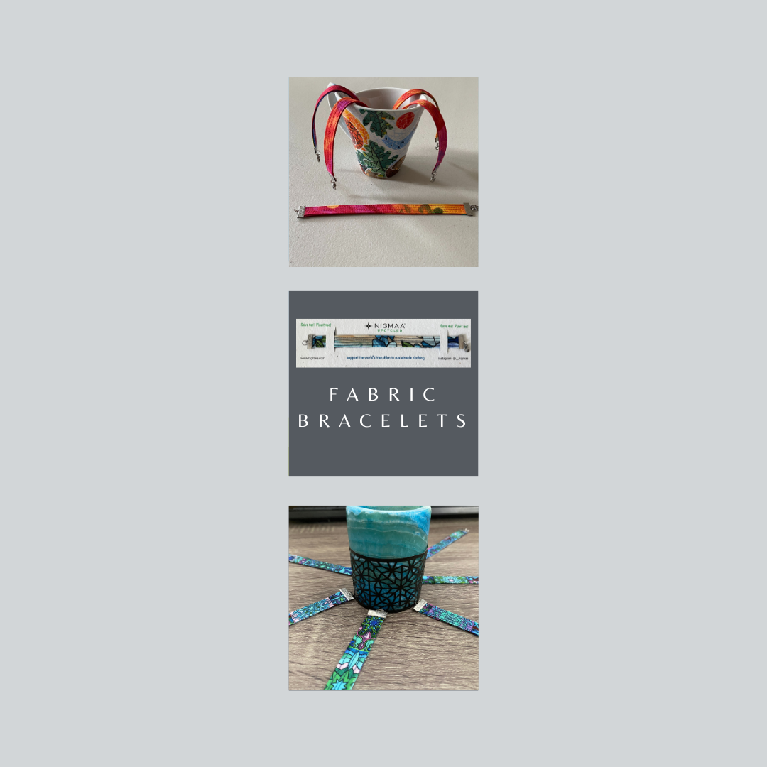 Introducing our new collection of upcycled fabric bracelets. These bracelets utilize cotton...